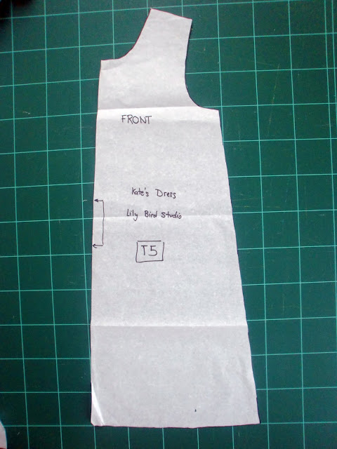 Partiremos de la pieza delantera del vestido (yo usé el patrón Kate's dress de Lily Bird Studio, puedes conseguirlo aquí o aquí).