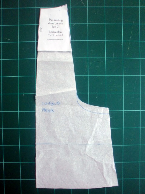 para lograrlo necesitaremos la pieza que nos proporciona en su tutorial Jess de Craftiness is Not Optional, en concreto la pieza que dice: "bodice front / sides". De nuevo usé la pieza de la talla 2T sin ninguna alteración: