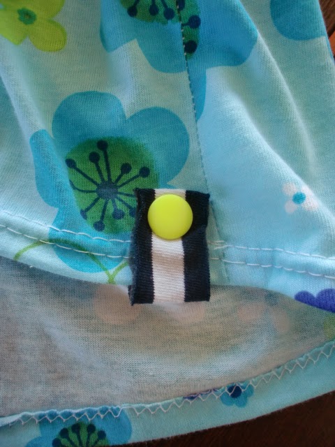 De cortar el bolsillo me quedó una tira monísima y perfectamente recta que me dió pena tirar. Recordé que tenía unos snaps en color amarillo fosfi a conjunto con la cremallera, así que acabó adornando el dobladillo. Simplemente doblé los bordes, la coloqué alrededor del bajo de la camiseta ya acabada y lo sujeté con el snap. Detallito perfecto en menos de 1 minuto!
