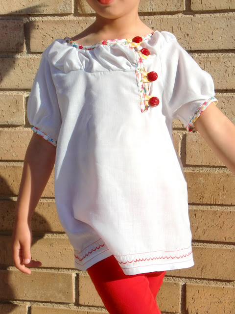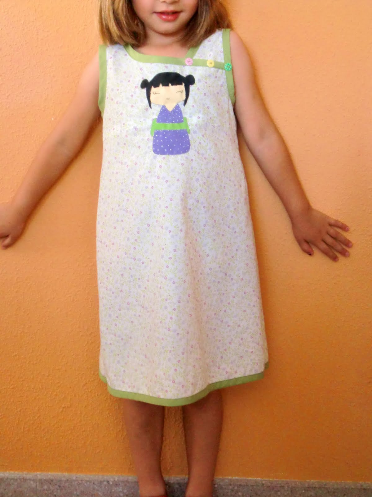 This time I've modified the pattern Burda 9740 to give it a 'kimono' touch to go along with the picture I painted on the front using the freezer paper technique. The picture, which I find sooo cute, was drawn by OLGA from El elefante rosa, who uploaded the picture to make it available for everybody.