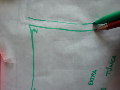 i també vaig tornar a fer una mica de trampa (li estic començant a agafar el gust ;) ) i vaig tallar les cises i canesú en la tela de punts i en l'entretela