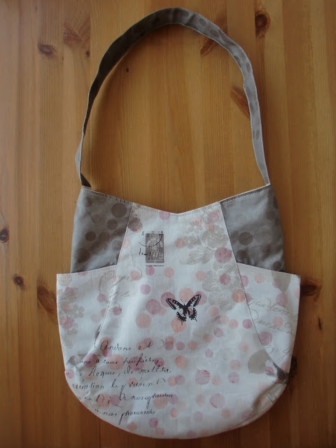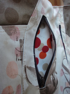 El mes pasado, durante los días que estuvimos en Tortosa, fuí al mercadillo de los lunes en busca de telas chulas y baratitas... y tuve suerte. Esta tela es reversible, es decir, tiene dos caras. Además es lo suficientemente gruesa y consistente como para no necesitar entretela!! perfecto! O sea que no he tenido que hacer pruebas para combinar telas sinó que simplemente he cortado todas las piezas de la misma tela y las he ido girando para ver qué combinación me gustaba más.
