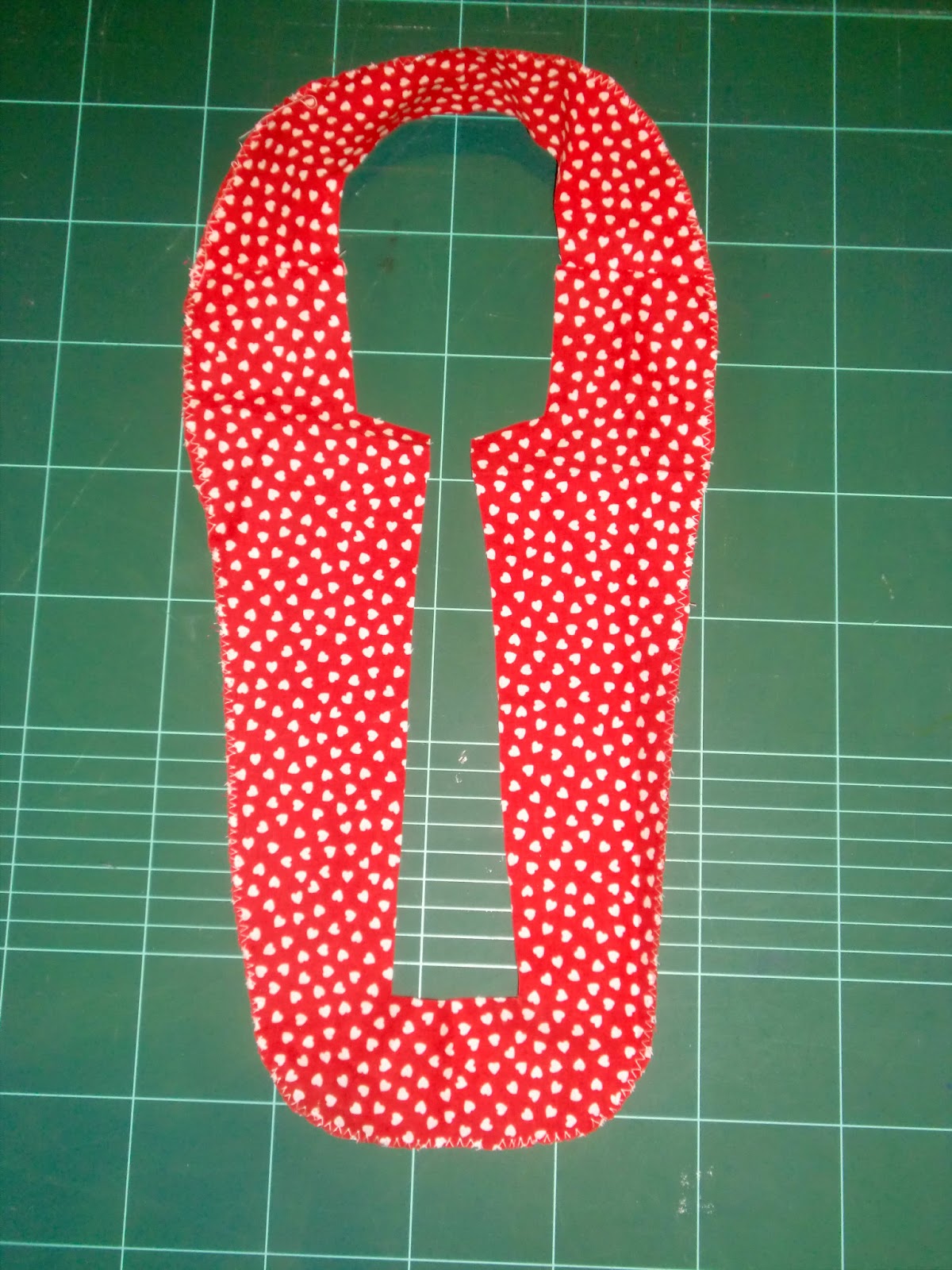 Lo siento pero no pensé en hacer fotos de este paso, de todas formas, puedes tomar de referencia la foto del vestido terminado y mirar cómo está rematada la parte de abajo del vestido.