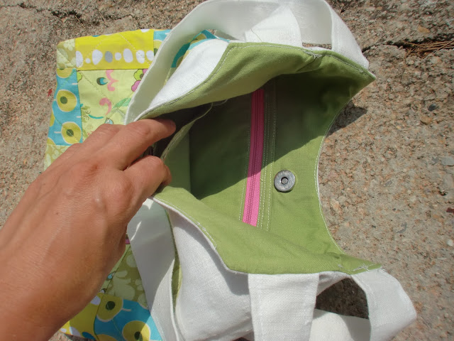 I enjoyed sewing this bag! and it was my first time doing patchwork! I must say that my respect for people who sew patchwork increased about a 500% (not that I didn't admire them before, but I realized how thorough and accurate must be your sewing to make those huge quilts). But don't worry, the patchwork needed to sew this bag is supereasy, and everything fits perfectly! Also, if you don't feel like sewing all those tiny pieces together, you can get great results by using a simple piece of fabric.