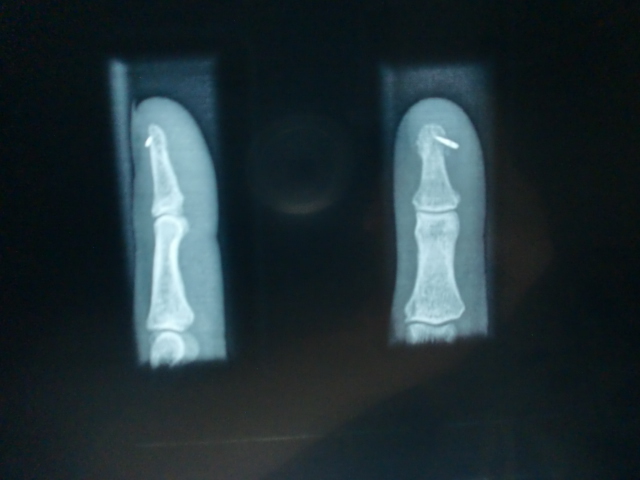 la foto de la radiografia no es veu gaire bé, però a l'original es pot veure fins i tot el forat de l'agulla...